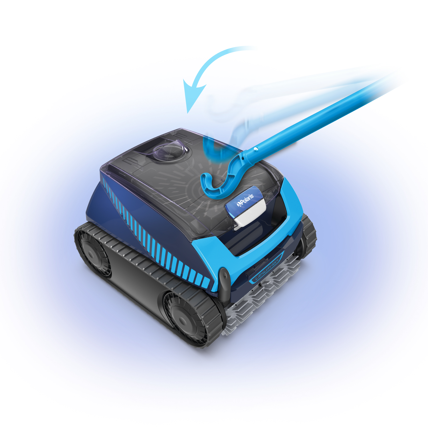 Once cleaning is complete, retrieving the cleaner is simple with two easy options: use the Tap & Lift™ Removal System by tapping the cleaner with your pool pole to make it climb to the waterline, or grab it at the end of its cycle when it automatically climbs to the waterline. Both options allow quick water evacuation and eliminate heavy lifting.